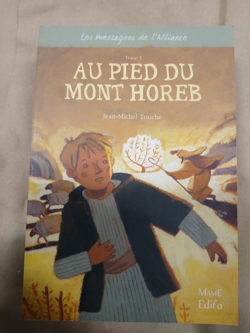 « Au pied du Mont Horeb » raconte l’histoire de Frédéric et Nicolas, deux collégiens d’aujourd’hui qui tombent brusquement dans le passé. Après le temps du Déluge, la capture des grands tigres et la terre peu à peu recouverte par les eaux, le récit se poursuit en Egypte auprès de Joseph, l’homme qui lit dans les rêves. Près de Madiân, au pied du Mont Horeb, se produit une rencontre de la plus haute importance. Alors commence, sous la conduite de Moïse, la formidable quête de la terre promise, avec une traversée du désert riche en péripéties.