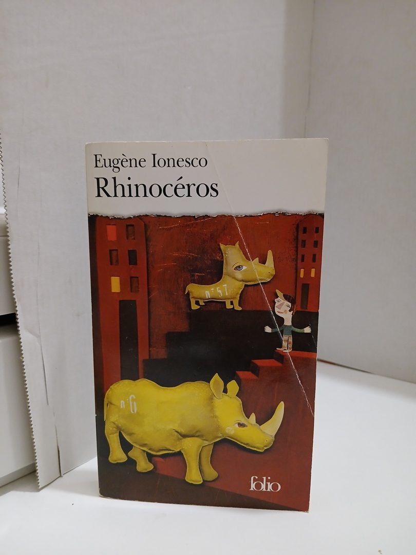 C’est donc une pièce engagée : « Je ne capitule pas » , s’écrie le héros. Le rhinocéros incarne le fanatisme qui « défigure les gens, les déshumanise » . On sent l’influence de La Métamorphose de Kafka. Dans une petite ville, un rhinocéros fait irruption. Par rapport à lui, les personnages prennent diverses attitudes. Certains se transforment en rhinocéros ; un troupeau défile. Seul Bérenger résiste à la marée des bêtes féroces, symboles du totalitarisme.